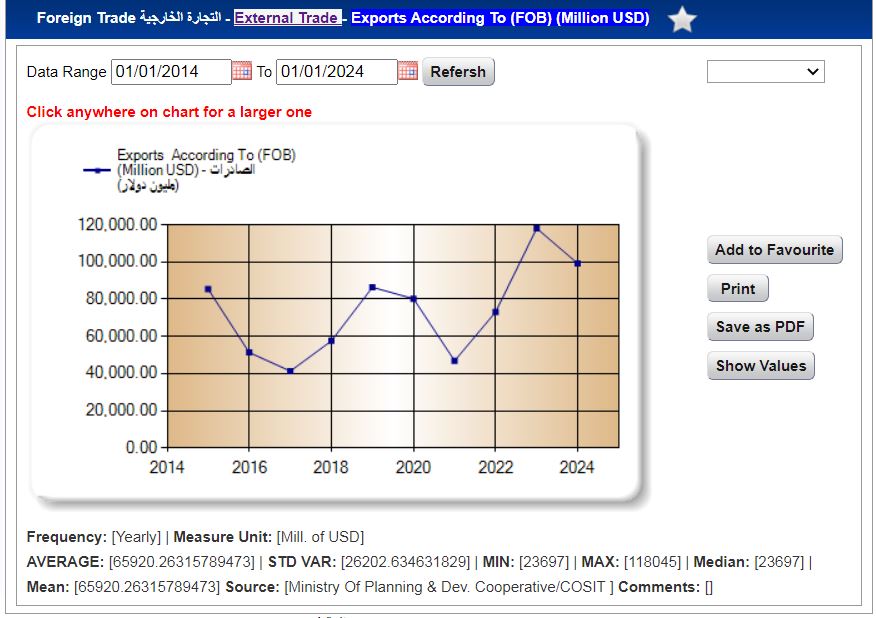 - البنک المرکزي العراقي(CBI)، التجارة الخارجية (الصادرات)؛