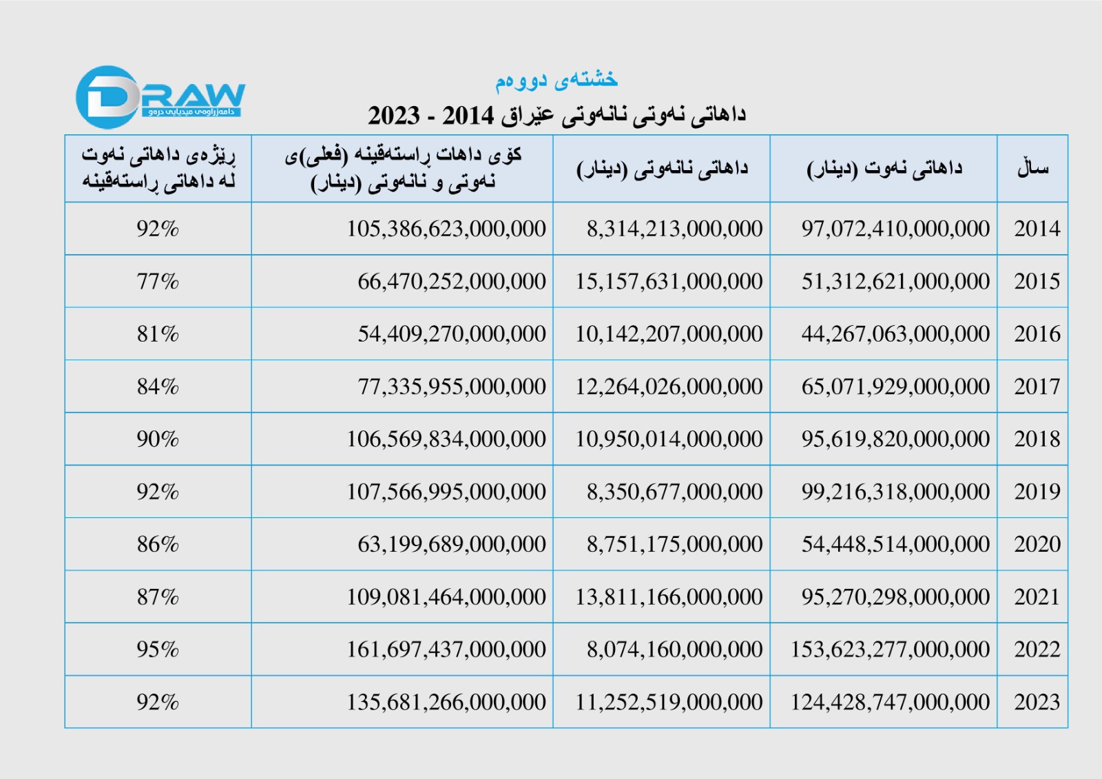 دووەم؛ داهاتی نەوتی و نانەوتی عێراق 2014 – 2023