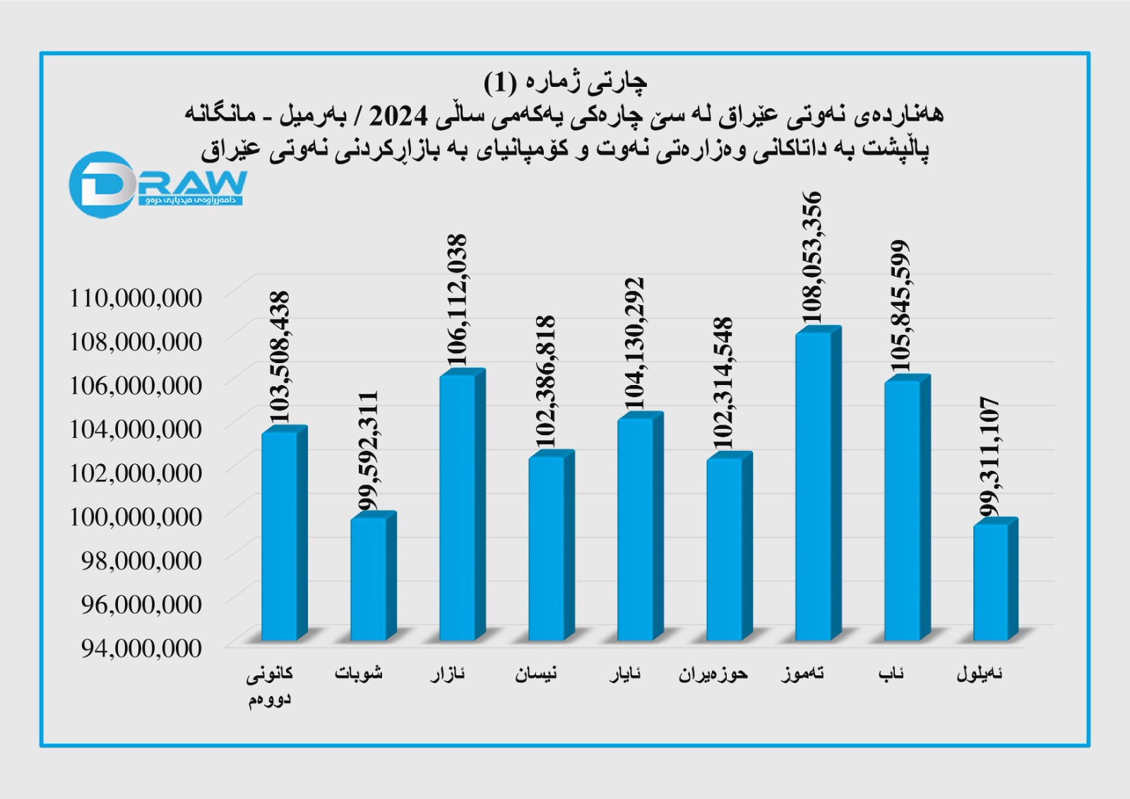 کەواتە بە کۆی گشتی عێراق لە مانگی تەموزی ئەمساڵدا بڕی (108 ملیۆن و 53 هەزار و 356) بەرمیل نەوتی بە تێکڕای ڕۆژانەی (3 ملیۆن و 485 هەزار و 592) بەرمیل نەوت هەناردە کردووەو بە تێکڕا هەر بەرمیلێکی بە (81 دۆلار و 70 سەنت) فرۆشتووە و کۆی داهاتەکەی بریتی بووە لە (8 ملیار و 827 ملیۆن و 436 هەزار و 927) دۆلار.