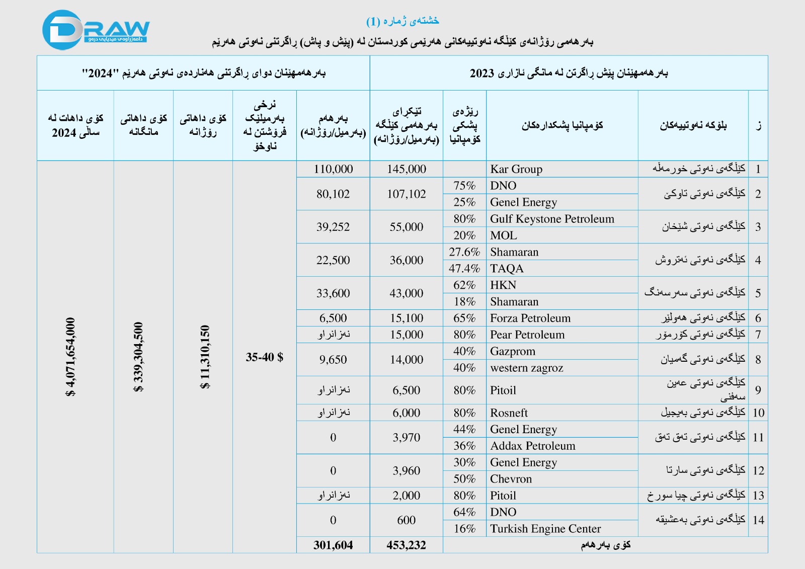 نەوتی هەرێمی کوردستان لە ساڵی (2024)دا