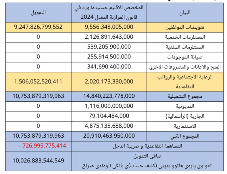 - تەنیا لە 2024 دا بڕی (10 ترلیۆن و 26 ملیار دینار ) بۆ هەرێمی كوردستان نێردراوە
