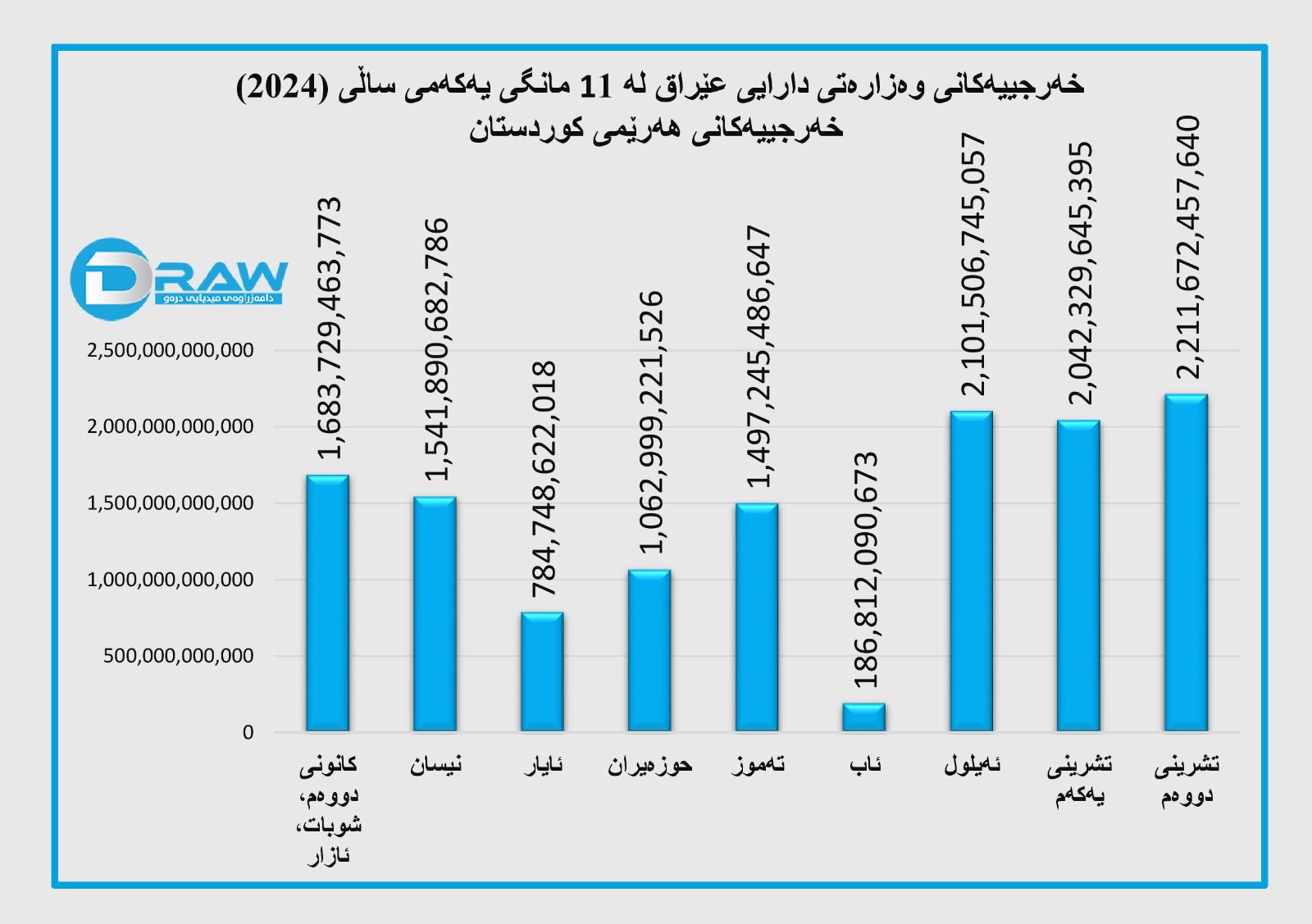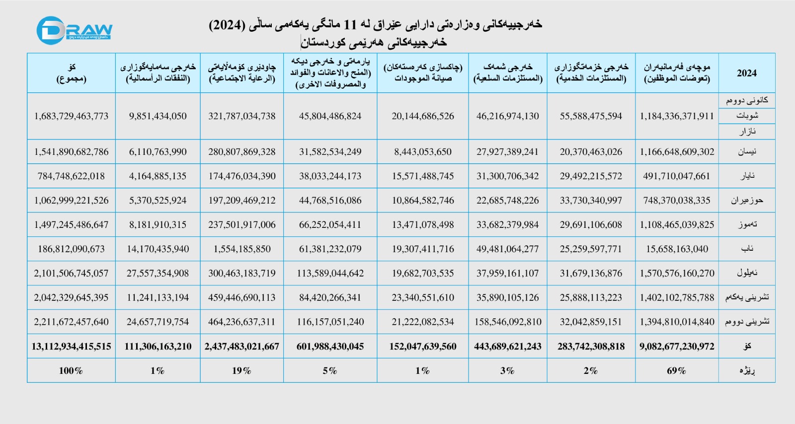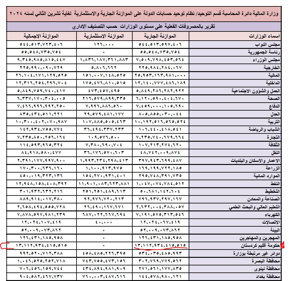 بەپێی وزارەتی دارایی عێراق ، خەرجی حکومەتی هەرێمی کوردستان لە (11 مانگی یەکەمی 2024)