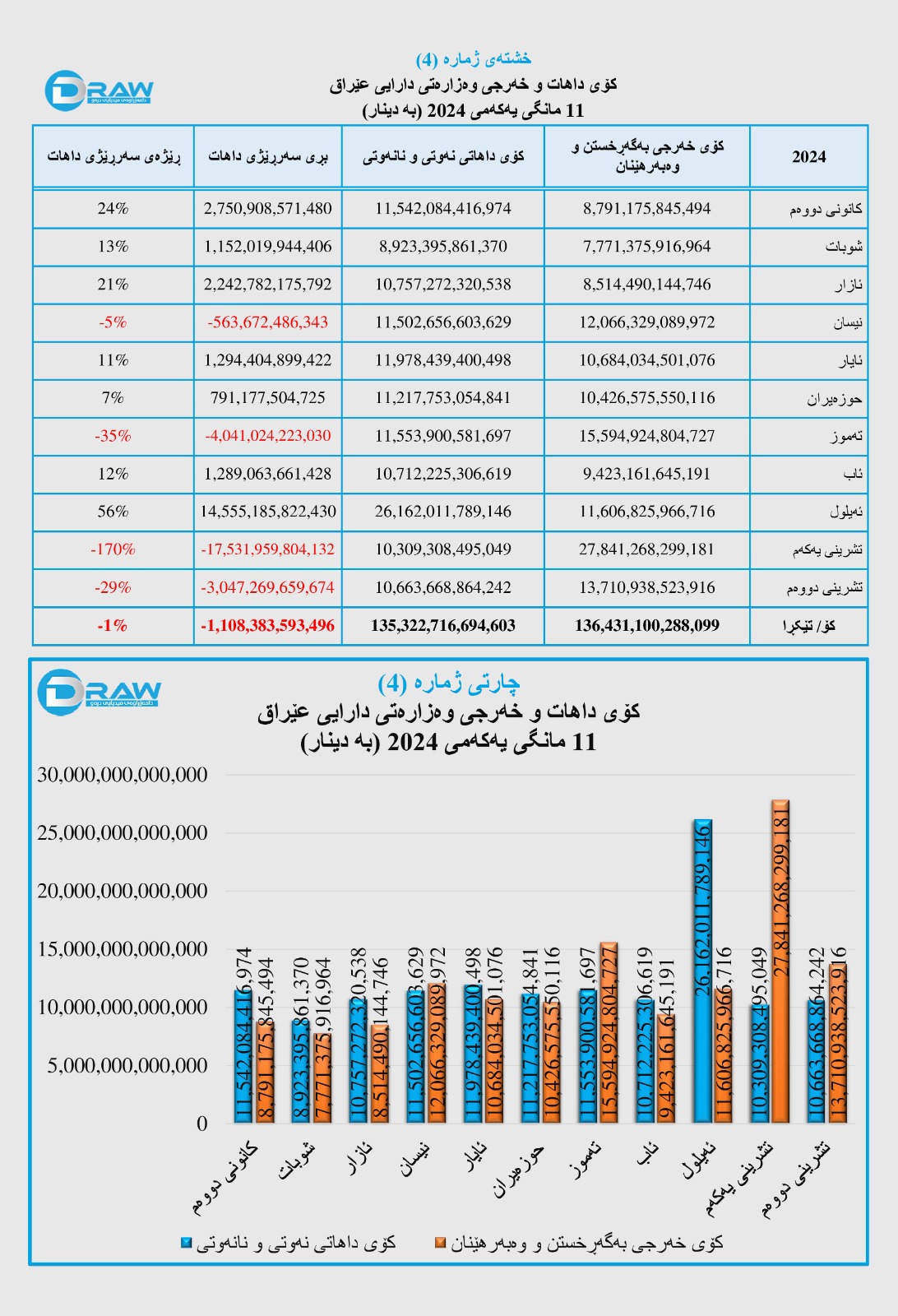 ? رۆژی (9ی شوباتی 2025) وەزارەتی دارایی عێراق داهات و خەرجی خۆی بۆ 11 مانگی یەکەمی ساڵی 2024 بڵاوکردەوە، بەپێی ڕاپۆرتەکە؛
