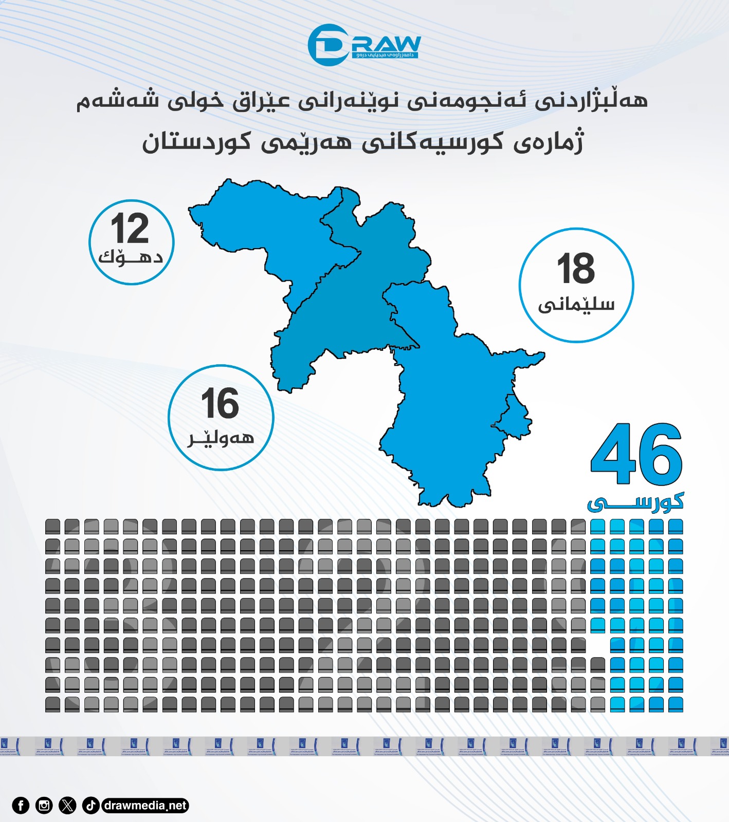 بۆ هەڵبژاردنی 11ی تشرینی دووەمی ئەمساڵ، لەكۆی 329 كورسی پەرلەمانی عێراق (46) كورسی لە سنوری هەرێمی كوردستاندایەو لەم ژمارەیەش (9) كورسییان ژنان دەیبەن، بەپێی سیستەمی هەڵبژاردن دەنگی دەنگدەران چۆن دەكرێت بە كورسیی پەرلەمان؟ ئەگەر كورسییەكی پەرلەمان بە هەر هۆكارێك چۆڵ بوو، چۆن شوێنگرەوەی بۆ دادەنرێت. وردەكاریی زیاتر لەم راپۆرتەدایە.