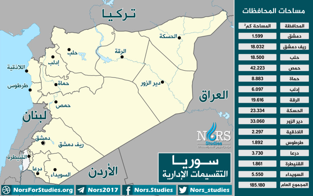 خاكی سوریا بە گشتی (185 هەزارو 180) كیلۆمەتر چوارگۆشەیە، لەو ژمارەیە تا پێش رووداوەكانی شێخ مەقسود و ئەشرەفیە: