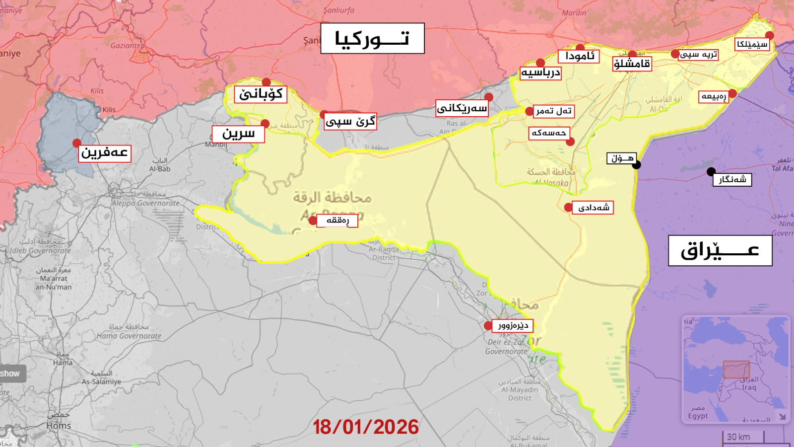 نەخشەی نوێی رۆژئاوای كوردستان