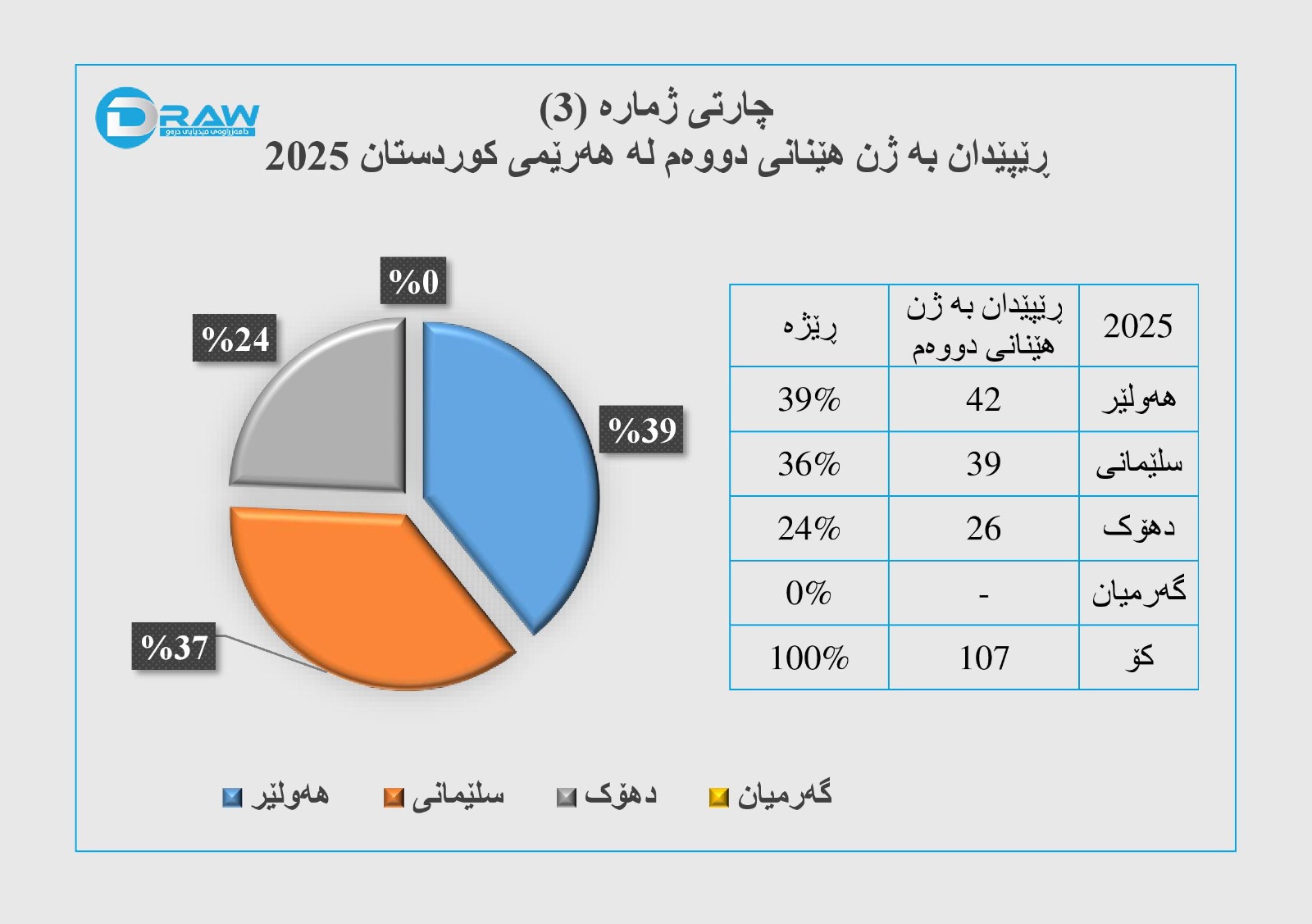 ? لەسەر ئاستی هەرێمی کوردستان (107) حاڵەتی ڕێپێدان بە ژن هێنانی دووەم تۆمارکراوەو بەرزترین رێژەی ژن هێنانی دووەم لە پارێزگای هەولێر بووە.