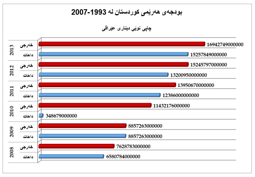 ئەوەی لە نێوان ساڵانی (2007-2013) بودجەی هەرێمی کوردستان بە یاسا ڕێکخراوە، پەیوەندیداەو بەو هاتنی پشکی هەرێمی کوردستان لە بەغدادەوە، بەپێی سەرچاوەکان ئەو پارانەی دەست حکومەتی هەرێم کەوتووە لە ڕێگەی بەشە بودجەی هەرێم لە حکومەتی فیدراڵ، کە لە ساڵی 2004ەوە تا ساڵی 2014 بەردەوام بوو نزیکەی (75) ملیار دۆلار بووە، بەڵام لەدوای ساڵی 2014ەوە حکومەتی هەرێم سەربەخۆیی ئابوری ڕاگەیاند، حکومەتی عێراقیش بەشە بودجەی هەرێمی ڕاگرت، ئەویش بەو جۆرە بووە؛ (بڕوانە چارتی ژمارە (3))