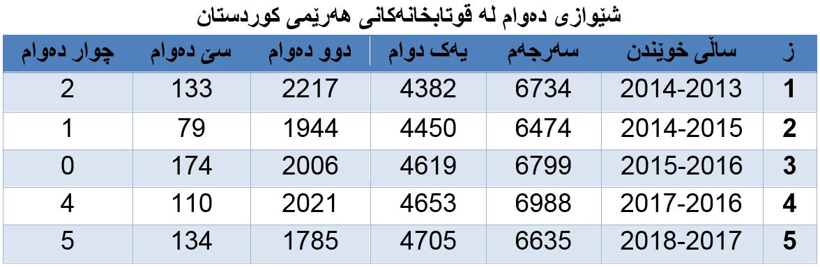 1. لە هەرێمی کوردستان تەنها (5) باخچەی منداڵان دروستکراوە، (1) باخچەیان حکومەتی هەرێمی تەمویلی کردووە، (4) باخچەکەی دیکەیان خێرخواز و وەبەرهێنەران دروستیان کردووە. (بڕوانە خشتەی ژمارە (2)).