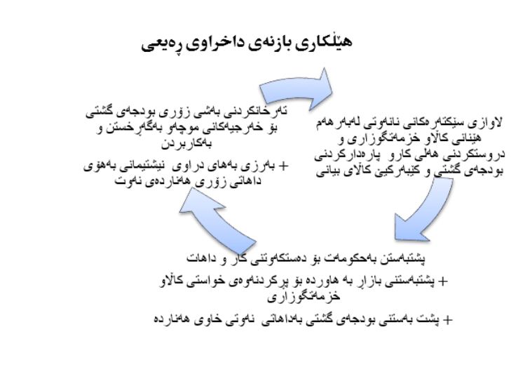 لهپاش 2003 ئهو كاتهی كه ههرێم سودمهند بو له بودجهی عێراق، دهمێك بو ئابوریی ههرێمهكه له ناو بازنهیهكی داخراوی ڕەیعیدا بو، كێشهی كهڵهكهبوهكانی دهیان ساڵی بۆ مابوهوه، سێكتهره ئابوریهكان و كهرتی تایبهت و بازاڕ لهبهرامبهر زیادبونی ژمارهی دانیشتوان و خستنهڕوی هێزی كار و خواستی ڕولهههڵكشاو بۆ كاڵاو خزمهتگوزاری لاوازو دهستهوسان بون، تاكهكان بۆ بهدهستهێنانی سهرچاوهی داهات و دهرفهتی كار پشتیان بهحكومهت و هێزه سیاسیهكان دهبهست، كۆمهڵگهیش بۆ تهواوی خزمهتگوزاریه گشتیهكان بهههمان شێوه ههر پشتی بهحكومهت دهبهست، ئیدی لهو كاتهوه تا ئێستا بۆ وهڵامدانهوهی ئهو دۆخه زۆرینهی داهاتهكانی حكومهت بۆ موچه و دامهزراندن و بهگهڕخستنی هێزی كار و دابینكردنی خزمهتگوزرای و خهرجیهكانی بهكاربردن ئاراسته دهكرێن، ئهوهیش هۆكاره بۆ زیادبونی خواستی گشتی بۆ كاڵاو خزمهتگوزاری كه بههۆی لاوازیی سێكتهرهكانی بهرههم هێنانهوه دهبێت ئهو خواسته لهڕێگهی هاوردهكردنهوه پڕبكرێتهوه. ئهمه سوڕی ئابوری بهردهوامی ناو بازنهی داخراوی ڕەیعیه له ههرێم.