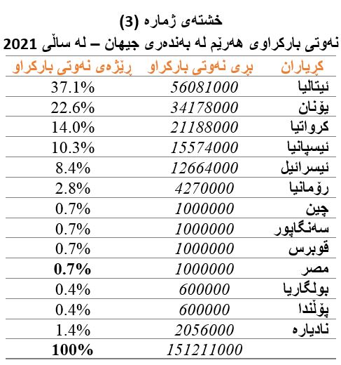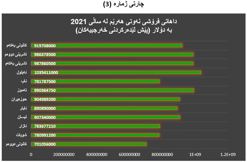 سێیەم: داهاتی نەوتی هەرێم لە ساڵی 2021