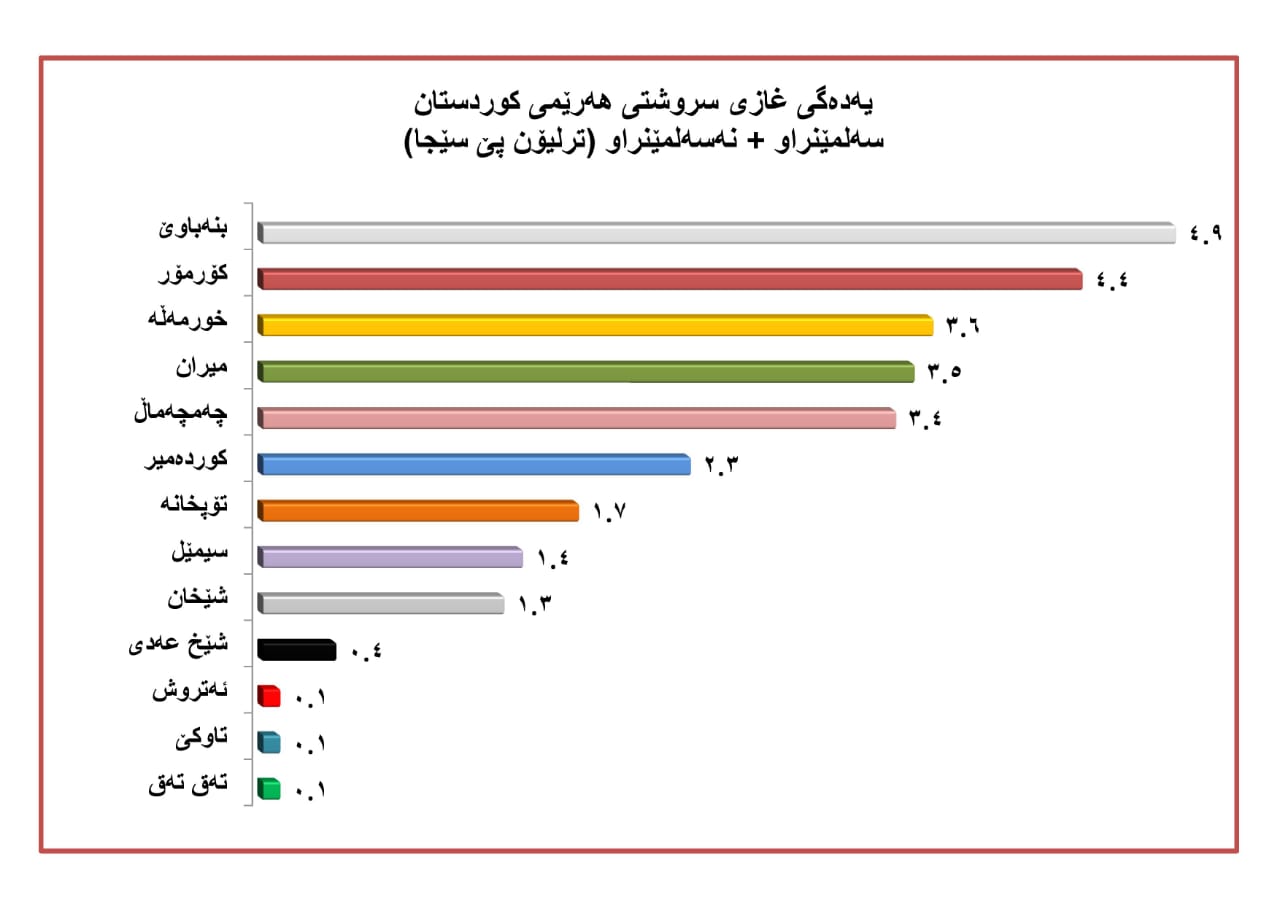 هەموو ئەم ئامارانە ئەو ڕاستییە دەسەلمێنن، کەهەرێمی کوردستان قەبارەیەکی گەورەی غازی سروشتی هەیەو شایەنی ئەوەیە پشتی پێ ببەسترێت.