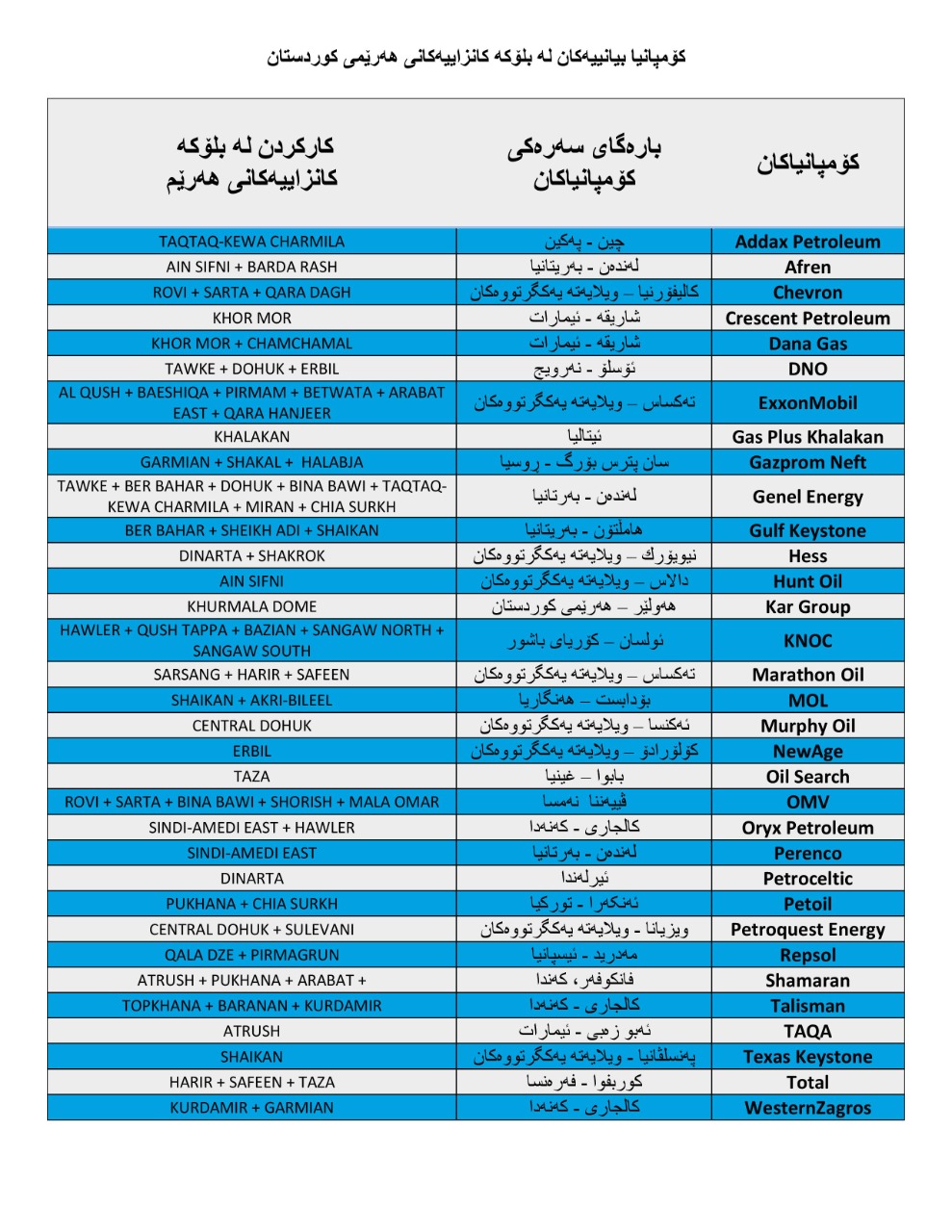 لەدوای پرۆسەی ئازادی عێراقەوە حکومەتی هەرێمی کوردستان دەستیکردووە بە وەبەرهێنان و پەرەدان بە کەرتی نەوت، لەم پێناوەدا چەندین قۆناغی یاسایی و سیاسی و ئابوری قورسی بڕیوە، کە قۆناغی یەکەمی بە نوسینەوەی دەستوری عێراق و، قۆناغی دووەم بە دەرکردنی یاسای نەوت و غازی هەرێم لە پەرلەمانی کوردستان، دواتر ئەنجامدانی گربەستی نەوتی لەگەڵ کۆمپانیا بیانییەکان، بەجۆرێک لە ساڵی (2002)ەوە دەستی بە گرێبەستی نەوتی کردووە لەگەڵ کۆمپانیا بیانییەکان تا ساڵی (2013)، ژمارەی کۆمپانیاکان لە هەرێمی کوردستان بەمەبەستی پەرەپێدانی کەرتی نهوت گەیشتوهته نزیکەی (40) کۆمپانیا. بۆ ئەم مەبەستە هەرێمی کوردستان دابەشکراوە بۆ (57) بلۆکی گەڕان و پشکنین بۆ وەبەرههێنانی نەوت و گاز دابەشکراوەو بەشێکی زۆری ئەو کێڵگانە هێشتا نەگەیشتوون بەرهەمهێنان، بەڵکو لە قۆناغەکانی پێش بەرهەمێناندان.