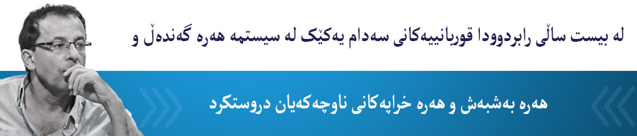 لە بیست ساڵی رابردوودا قوربانییەکانی سەدام یەکێک لە سیستمە هەرە گەندەڵ و هەرە بەشبەش و هەرە خراپەکانی ناوچەکەیان دروستکرد. خاڵی هاوبەش و گرێدەر لە وڵاتەکەدا، کە هێزە جیاوازەکانی ئەم سەری وڵاتەکە بەوانی ئەو سەری وڵاتەکەوە بەیەکەوە دەبەستێتەوە دوو شتە: گەندەڵیی، گەندەڵییەکی گەورەو رێکخراو، کە بە پلەی یەکەم بە پارەی نەوت و غازەوە پەیوەستە. دووهەم، چەسپاندنی دەسەڵاتی ناوچەیی و درێژەدان بە لۆژیکی دابەش و پارچەپارجەکردنی وڵاتەکە.