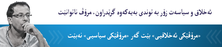 لەم دیدگایەدا ئەخلاق و سیاسەت زۆر بە توندی بەیەکەوە گرێدراون، مرۆڤ ناتوانێت «مرۆڤێکی ئەخلاقیی» بێت گەر «مرۆڤێکی سیاسیی» نەبێت، واتە بەشدار نەبێت لە دروستکردن و رێکخستن و ئاراستەکردنی ژیانی گشتیدا. وەکچۆن مرۆڤ ناتوانێت «مرۆڤێکی سیاسیی» بێت، واتە خەریکی دروستکردن ڕێکخستن و ئاراستەکردنی ژیانی گشتیی بێت، بەبێ ئەوەی «مرۆڤێکی ئەخلاقیی» بێت. وەک وتیشم پرنیسیپی ژمارە یەکی ناو ژیانی ئەخلاقیش پرنسیپی قوربانینەدان بە مرۆڤ و قوربانینەدان بە خودی ژیانە. لە هەموو ئەو دۆخانەدا، مرۆڤەکان بەناوی هەر پرنسیپێکی ئەبستراکتەوە بیربکەنەوە و کاربکەن، ئەوەی دەبێت بپارێزرێت وێناکردنی ژیانی مرۆڤە وەک پێدراوێکی پیرۆز. ئەگەر مرۆڤ بوونەوەرێک بێت نەتوانێت بەبێ موقەدەس بژیی، ئەوا موقەدەسی ژمارە یەک وێناکردنی ژیان خۆیەتی وەک پێدراوێکی پیرۆز کە کەس نەتوانێت، بەناوی هیچ ئایدیایەکی ئەبستراکتەو، لە نەتەوە و بۆ نیشتیمانەوە بیگرە بۆ سەرۆک و خودا خۆیشی، دەست بۆ ئەو ژیانە ببات و دەستدرێژی بکاتە سەر.