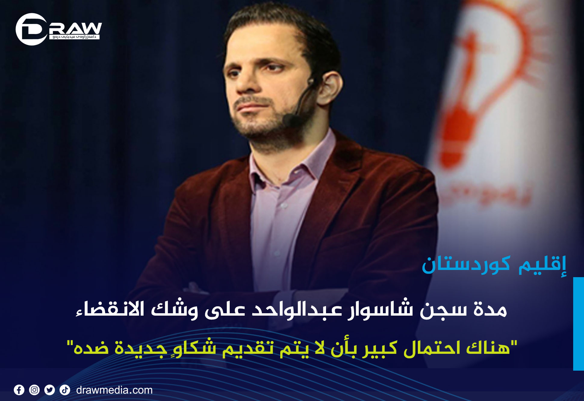 عربيةDraw: من المتوقع أن تكتمل مدة سجن شاسوار عبد الواحد، رئيس حراك الجيل الجديد، مع احتساب فترة التوقيف، ما قد يؤدي إلى الإفراج عنه. كان قد حكم عليه في 2 آيلول 2025 بالسجن لمدة 5 أشهر من قبل محكمة السليمانية بناءً على شكوى من (شادي نوزاد) وهو الآن في سجن الإصلاح الكبير في السليمانية. بموجب قرار المحكمة، يجب احتساب جميع فترات التوقيف السابقة، حيث قضى(35) يومًا في التوقيف قبل صدور الحكم. - من 15/5 إلى 29/5/2019، تم توقيفه لمدة 14 يومًا في محكمة تحقيق الأسايش(الأمن) في السليمانية. - من 12/8/2025 حتى صدور الحكم في 2/9/2025، تم توقيفه لمدة 21 يومًا. - بإجمالي فترة التوقيف التي قضاها تكون 35 يومًا. وبناءً على ذلك، إذا تم احتساب المدة الكاملة (5 أشهر و35 يومًا) من تاريخ 2/9/2025، فإن الموعد المحدد سيكون يوم 29/12/2025. - أما إذا تم احتساب فترة التوقيف لعام 2025 فقط، والتي تبلغ 21 يومًا، فإن موعد الإفراج عنه سيكون يوم 13/1/2026. وفقًا لمتابعات (Draw (، هناك احتمال كبير بأن لا يتم تقديم شكاوٍ جديدة ضد شاسوار عبد الواحد، رئيس حراك الجيل الجديد، وأن لا تصدر المحكمة أي قرارات أخرى. جاء ذلك بعد تأجيل جلسة المحاكمة التي كان من المقرر عقدها في 16 كانون الأول. يُتوقع أن يتم إطلاق سراح شاسوار عبد الواحد، ولكن مع احتمال فرض قيود على تحركاته أو وضعه تحت المراقبة. حراك الجيل الجديد تمتلك حاليًا 15 مقعدًا في برلمان كوردستان و3 مقاعد في مجلس النواب العراقي