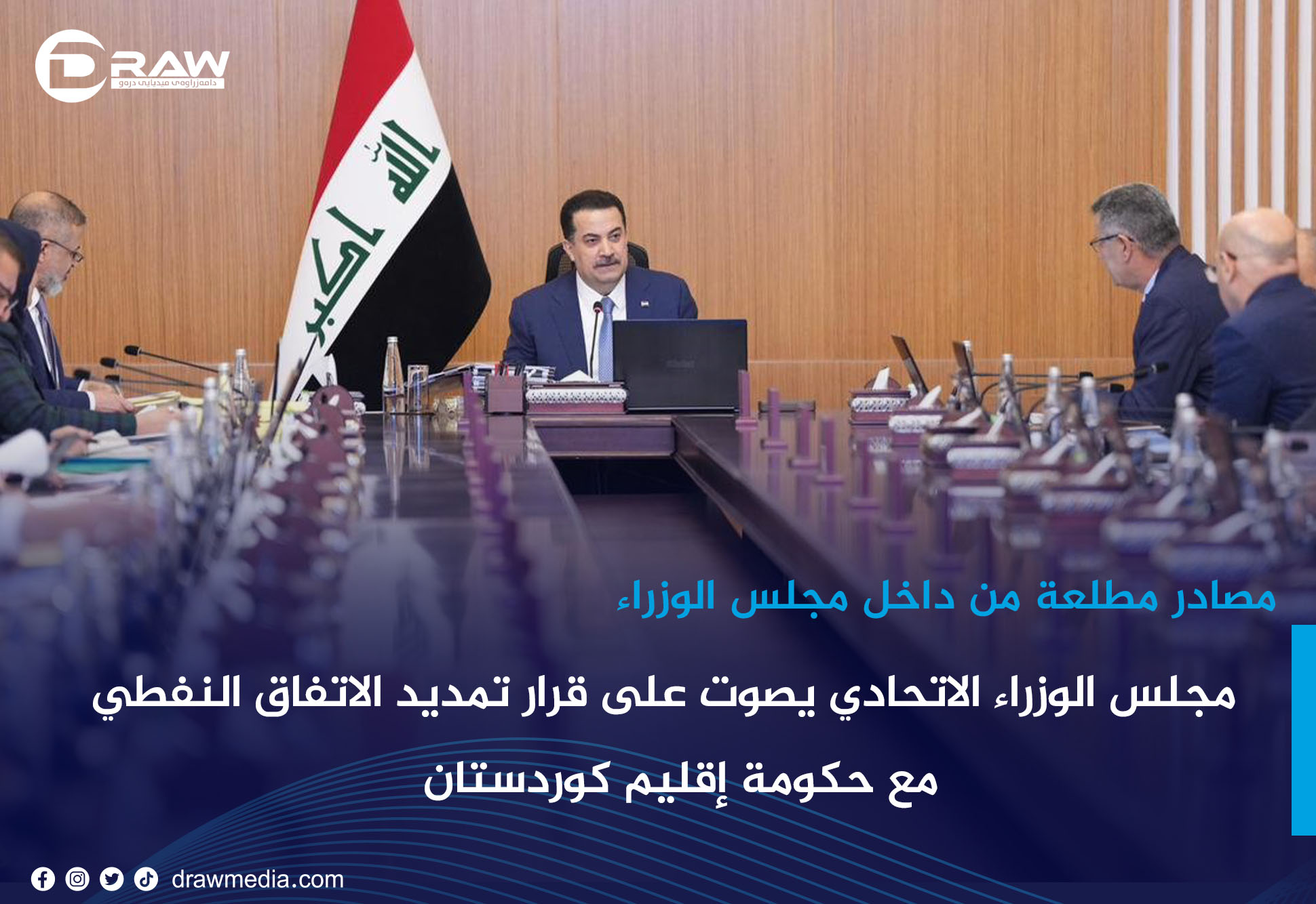 عربيةDraw: صوت مجلس الوزراء، اليوم الثلاثاء على قرار تمديد الاتفاق النفطي مع حكومة إقليم كوردستان بالاغلبية. ووفق مصادر مطلعة من داخل مجلس الوزراء "مبلغ 120 مليار دينار من الإيرادات غير النفطية للإقليم سيبقى دون تعديل، على أن يُسلَّم شهريًا إلى وزارة المالية العراقية مقابل صرف رواتب موظفي الإقليم" ولم يتخذ مجلس الوزراء أي قرار بشأن رواتب شهري تشرين الثاني وكانون الأول وجّه رئيس الوزراء محمد شياع السوداني خلال الاجتماع وزيرة المالية بصرف رواتب شهر تشرين الأول لموظفي إقليم كوردسنتان الاتفاق، تتولى حكومة الإقليم تصدير النفط الخام المنتج من حقول إقليم كوردستان إلى شركة تسويق النفط العراقية (سومو)، على أن تعود عائدات النفط مباشرة إلى الخزانة الاتحادية. في المقابل، وافقت الحكومة الاتحادية على تغطية الالتزامات المالية للإقليم من الميزانية العامة الاتحادية. يأتي هذا التمديد في الوقت الذي كانت فيه عملية تصدير النفط من الإقليم متوقفة منذ 25 مارس 2023، ثم استؤنفت في آيلول الماضي. ورغم الاتفاق، لم تتلق حكومة الإقليم سوى دفعتين من رواتب الموظفين، تصدير نفط الإقليم مستمر عبر شركة تسويق النفط العراقية (سومو)، في وقتٍ لا تزال فيه مستحقات الشهرين الأخيرين(تشرين الثاني و كانون الأول) قيد البحث رغم إرسال القوائم إلى بغداد".