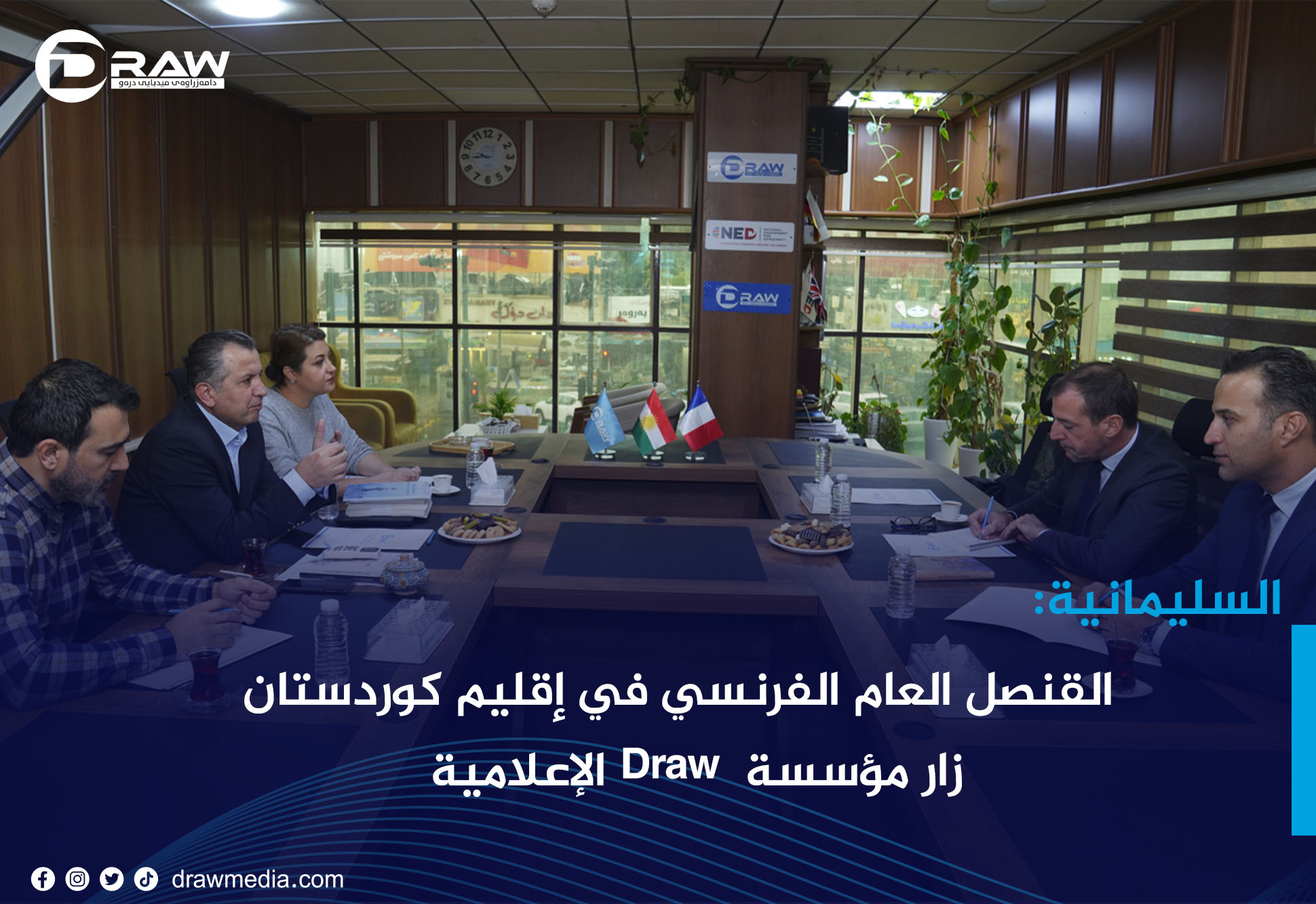 عربيةDraw: زار القنصل العام الفرنسي في إقليم كوردستان، يان بريم، مؤسسة Draw الإعلامية في السليمانية. خلال الزيارة، تم تقديم بيانات وإحصائيات حول نتائج الانتخابات البرلمانية العراقية وموقع القوى السياسية الكوردستانية، بالاستناد إلى الكتب والمنشورات التي أصدرتها المؤسسة. كما تم تقديم تحليلات خاصة بقضايا الانتخابات وحرية التعبير في إقليم كوردستان، بالإضافة إلى مناقشة تداعيات الانتخابات على الوضع العام في الإقليم.