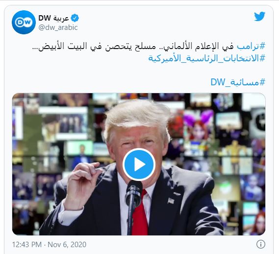 من جهته، لم يتحدث ترامب خلال نهار الجمعة علنا لكنه اعتبر في تغريدة أن جو بايدن يجب ألا يعلن الفوز "بشكل غير شرعي". وكتب "يمكنني أنا أيضا أن أعلن ذلك، الاجراءات القانونية بدأت للتو!".