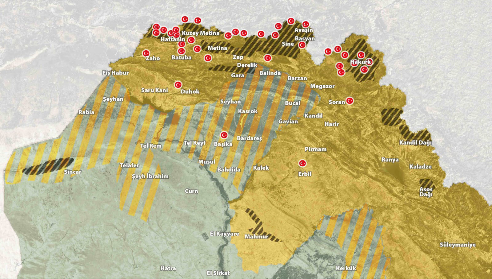 According to a map released by the Turkish presidency, Turkey has 37 military and intelligence bases in the Kurdistan Region.